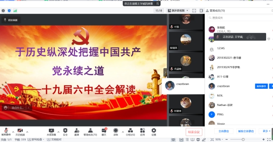 为深入贯彻学习党的十九届六中全会精神,推动学院党建工作与时俱进、创新发展,3月9日19:30,卡通a片 举办了学习十九届六中全会精神专题党课。全院师生通过线上方式参加了本次党课,会议由卡通a片 党总支书记王震主持。