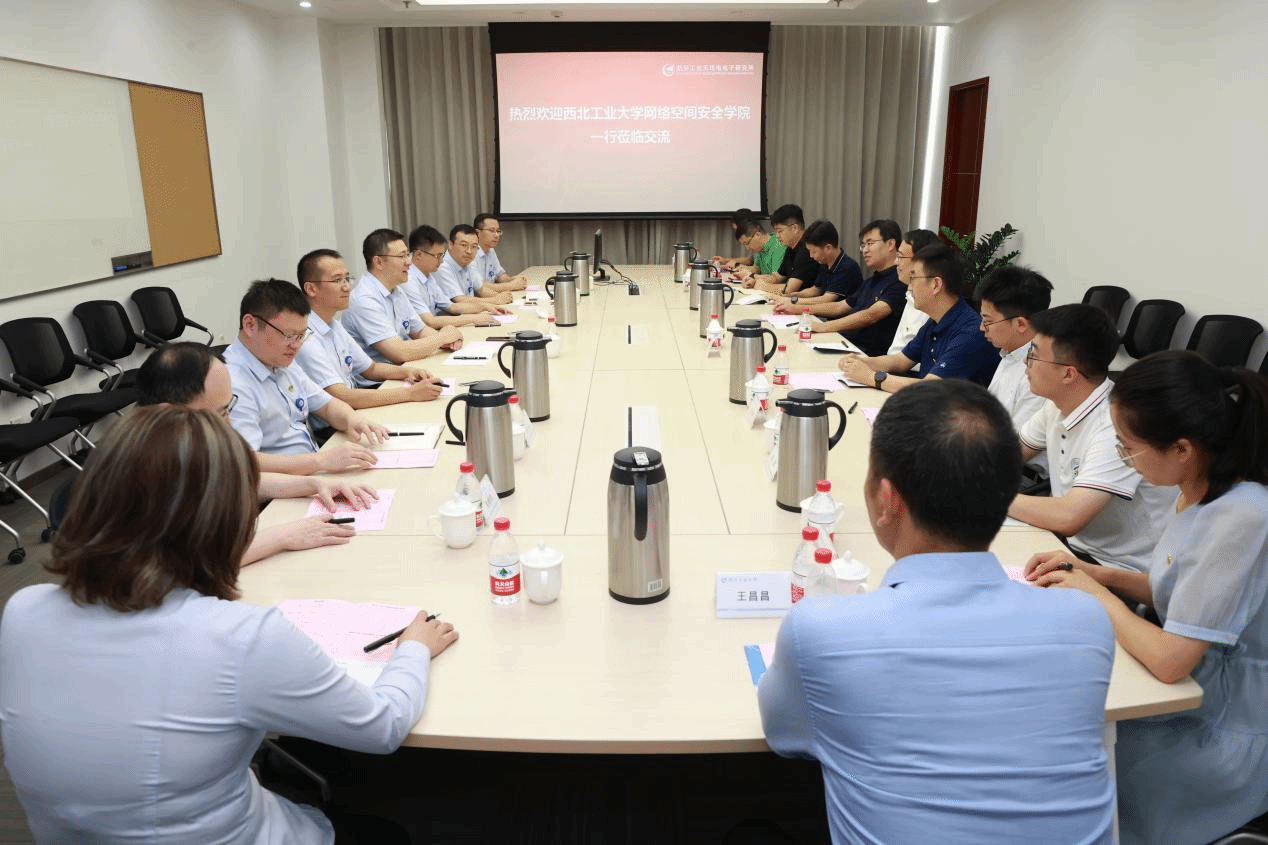 在上电所,双方开展了座谈交流。所领导分享了党建引领发展的工作模式和特色做法,回顾了上电所和西工大在探索前沿基础技术、引领航电应用创新方面建立的合作模式和结成的深厚友谊。他表示,长期以来,一大批西工大校友投身祖国航空工业,为国家航电事业做出了突出贡献,他希望能够与网安学院在网络空间安全领域,尤其是安全防护、指挥控制等方面开展深入合作,真正实现校企互补。双方共同探讨了人才联合培养与校企科研合作模式,交流了科研方向和需求,展望了双方在网络空间安全领域开展合作的前景。