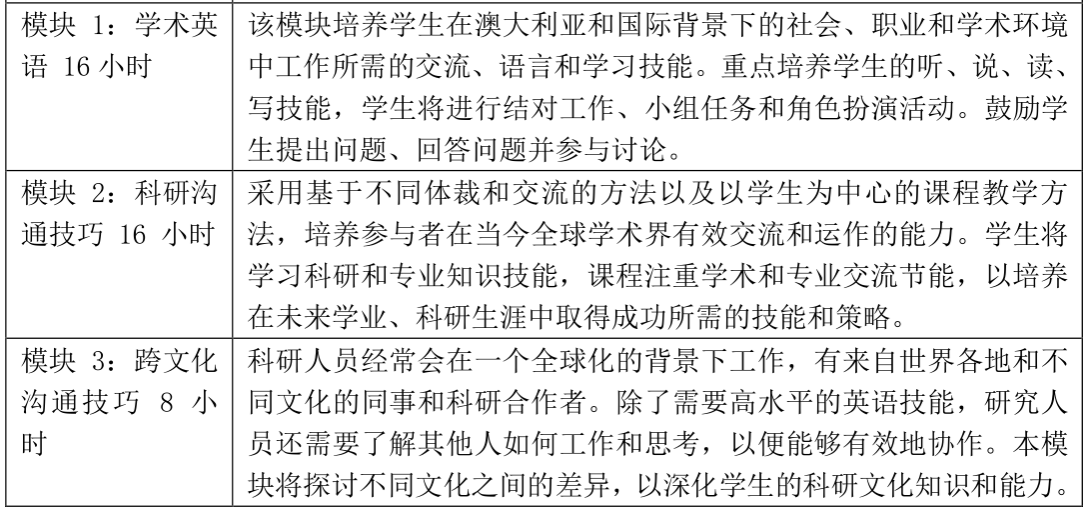 项目共2周,40个小时,旨在培养学生在澳大利亚和国际科研环境中所需的交流、语言和学习技能;