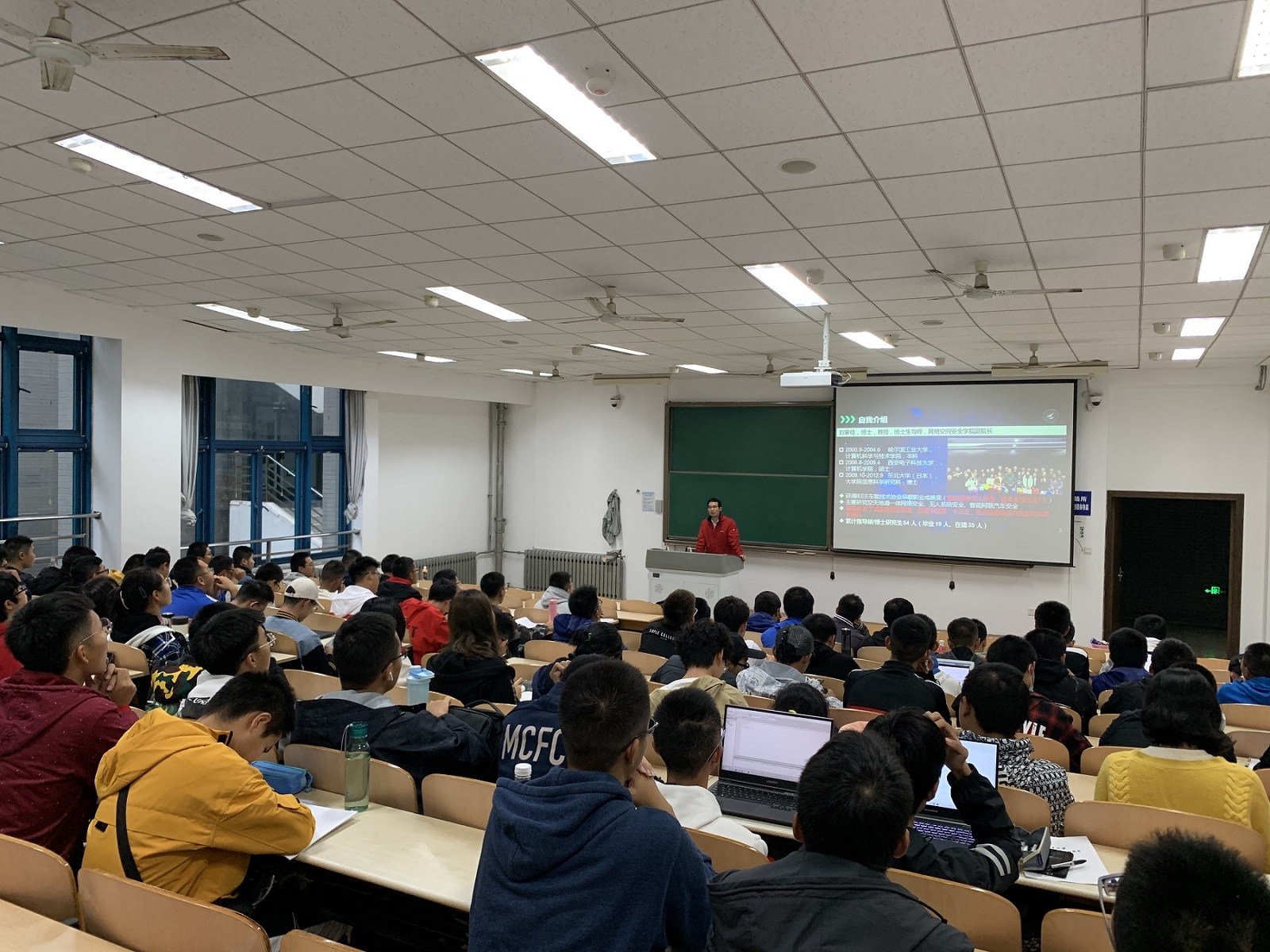 刘家佳副院长幽默而精彩的报告赢得了阵阵掌声,激发了同学们的学习热情,也激励着同学们为国家的繁荣昌盛和学校发展而不懈奋斗。