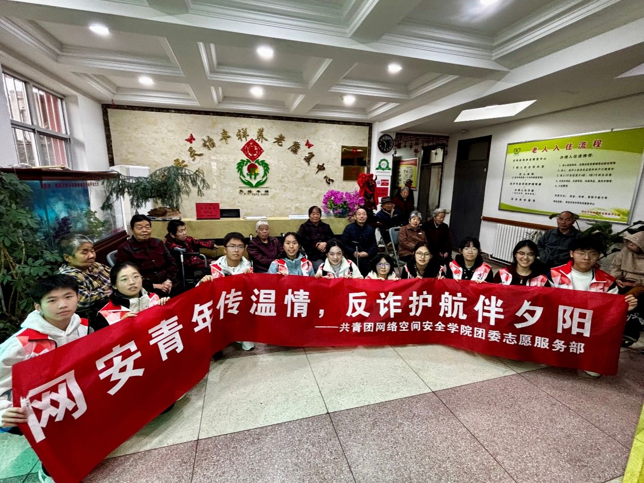 全国“敬老月”到来之际,为弘扬中华民族敬老爱老的传统美德,提升社区老人的反诈安全意识,10月19日上午,共青团卡通a片 委员会志愿服务部组织12名志愿者走进西安天怡丰祥养老康复中心,开展了“网安青年传温情,反诈护航伴夕阳”活动。