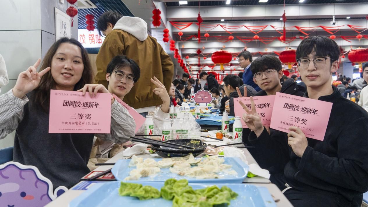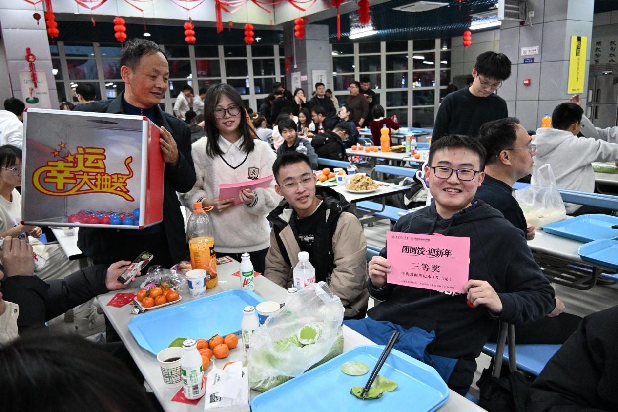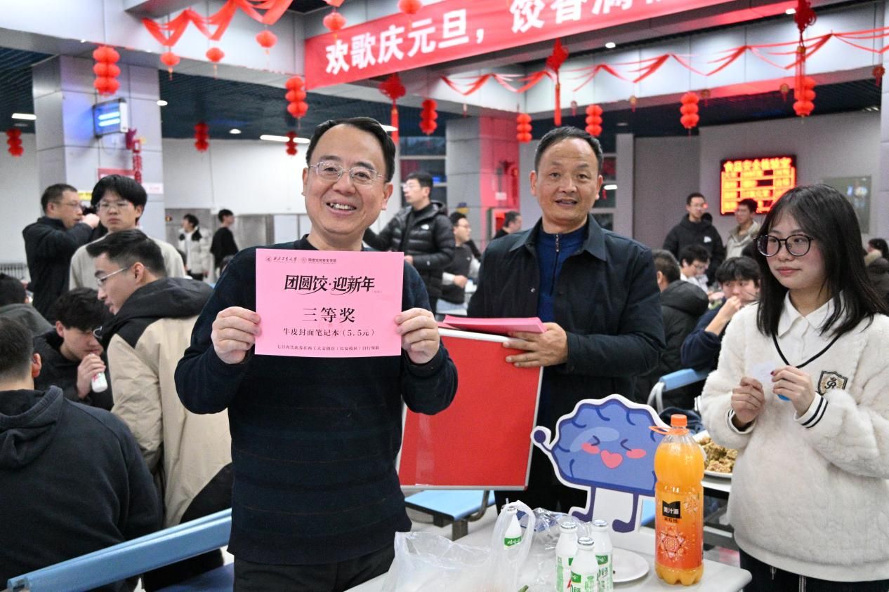 活动现场暖意融融,师生们围坐一桌,分工协作、各展身手,形态各异的饺子在欢声笑语中逐渐堆满餐盘。大家一边包饺子,一边畅谈学业生活,分享过往趣事与新年期许,热腾腾的蒸汽氤氲着团圆的气息,拉近了师生间的距离。学院精心准备的抽奖环节不时点燃全场热情,每一份奖品都承载着学院的心意与新年的祝福,将活动的喜庆氛围推向高潮。