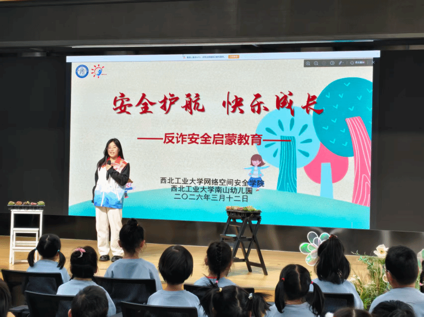 师生代表与南山幼儿园师生携手,将学雷锋志愿服务、植树节实践和“网小安”反诈宣传相结合,以实践行动传承雷锋精神、传递生态文明理念、守护儿童健康成长。南山幼儿园园长沈俊和卡通a片