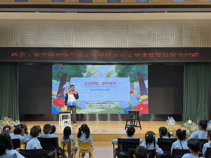 在全国第 63 个学雷锋纪念日与第 48 个植树节交汇之际,3 月 12 日,学院组织 “网小安” 志愿者走进西工大南山幼儿园,开展 “学雷锋践初心・植新绿护成长” 主题实践活动。活动通过反诈安全课堂情景模拟和绿植科普讲解,让小朋友在互动中学习安全知识、树立生态环保理念。在户外植树环节,小朋友与志愿者、教师分工协作,共同栽种树苗,践行护绿约定。本次活动将学雷锋志愿服务、植树节实践与 “网小安” 反诈宣传有机结合,以实际行动传承雷锋精神、传播生态文明理念、守护儿童健康成长。南山幼儿园园长沈俊、卡通a片