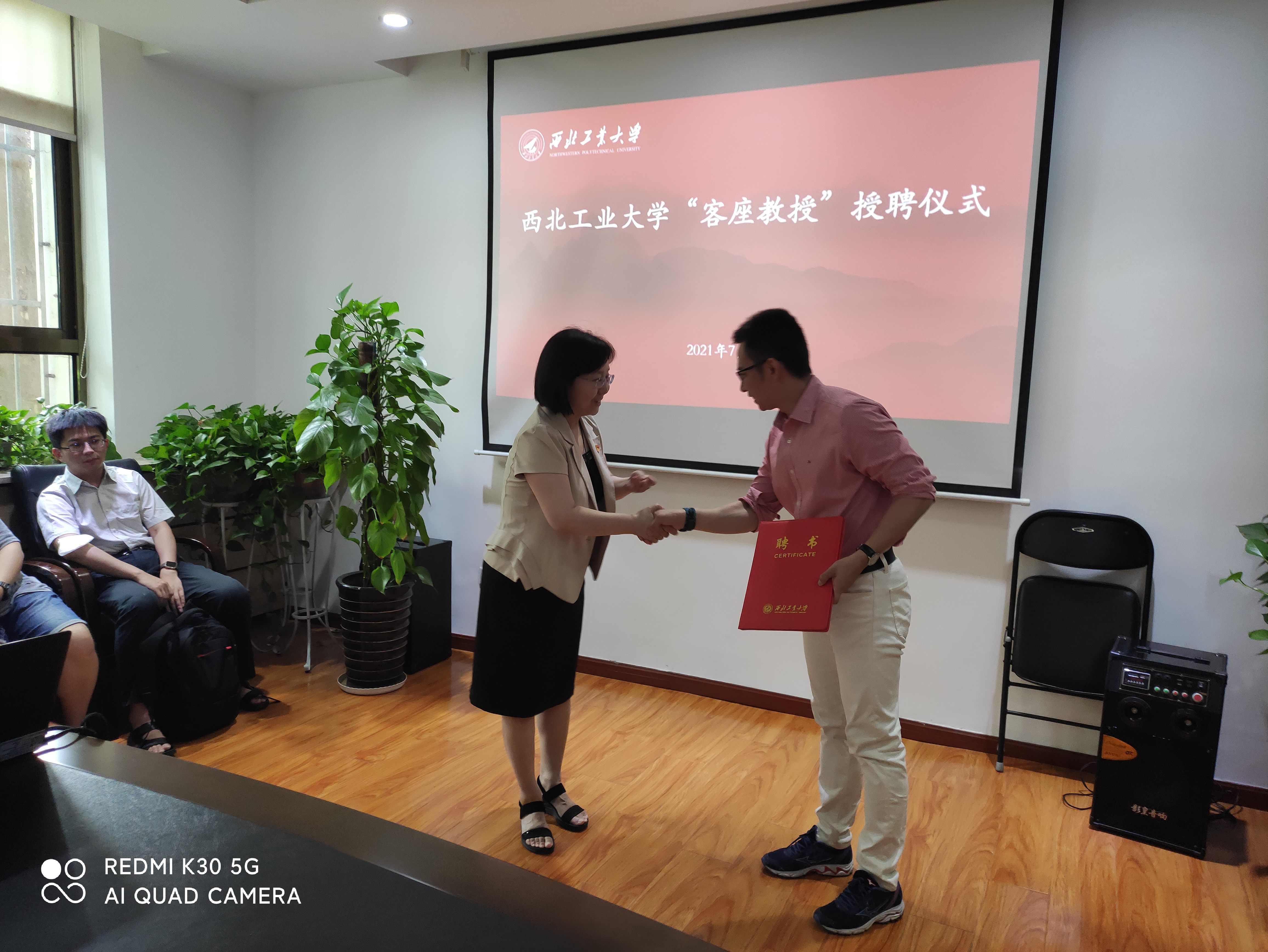 随后张艳宁助理为宋令阳教授颁发了客座教授聘书,佩戴了卡通a片