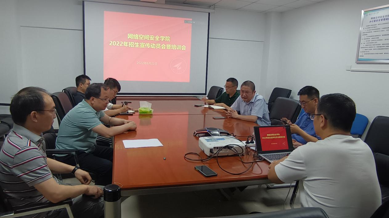 召开2022年宣传动员与培训会。常务副院长张盛兵、教学副院长刘志强、副书记禹亮,各招生组组长及相关招生老师、学生以线上线下相结合形式参加会议。