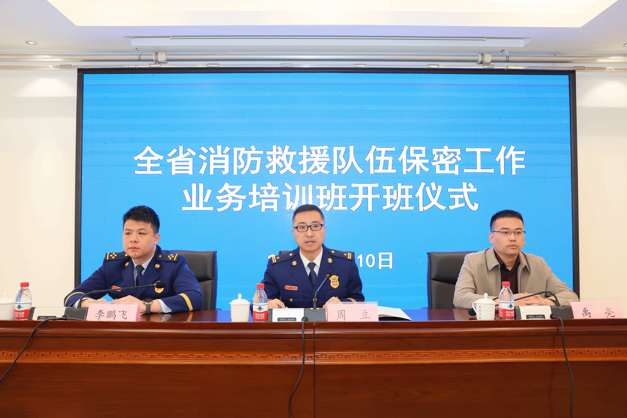 党总支副书记禹亮出席了开班仪式。开班仪式由省消防救援总队办公室助理员李鹏飞主持,来自陕西省总队办公室及西安、咸阳、榆林、宝鸡等地市的94名一线保密人员参加了本次培训。