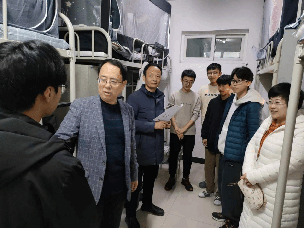 党总支书记张文涛、副书记杜瑶、办公室雷雅梅、辅导员王昌昌、蒋佳琪、兰铭等一行深入学院楼各区域及学生宿舍,通过现场查看、与师生面对面交流等方式进行新学期安全生产检查。