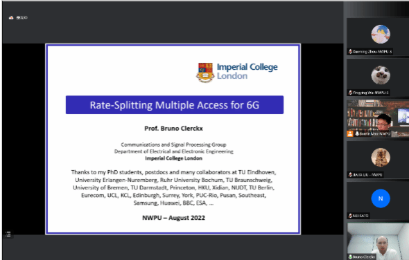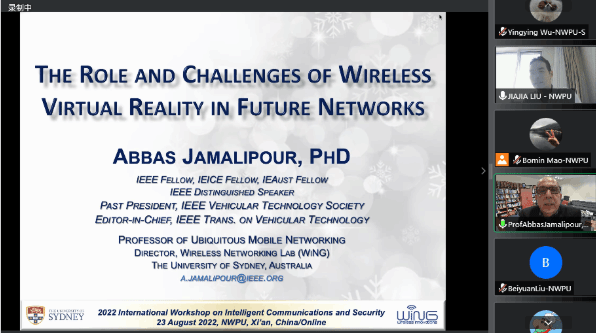 The Australian Academy of Engineering fellow, IEEE Fellow and Professor Abbas Jamalipour of the University of Sydney gave a presentation entitled "The Role and Challenges of Wireless Virtual Reality in the Future The "Networks" report explains the technical requirements, challenges and security risks of virtual reality in the future 6G era in a nutshell. Academician of Japanese Academy of Engineering, IEEE Fellow and Professor NeiKato of Tohoku University made a presentation entitled "6G Technologies for Supporting Smart Io T: "Future Perspective" provides a systematic analysis and outlook on key technologies and architectures of the Internet of Things in the 6G era; IEEE Fellow and Professor BrunoClerckx of Imperial College London gave a presentation entitled "Rate-Splitting Multiple Access for 6G", The principle and application of RSMA (Rsplitting Multiple Access) are introduced in detail. In addition, our professor Mao Bomin made presentation on Intelligent Resource Allocation and Task Scheduling in 6G Edge Network for the theme, the associate professor Guo hongzhi used Multi-UAV Cooperative Communications and Computing in 5G Advanced and Beyond as the theme. Associate Professor Yu Yinbo's lecture on The Security of Control Logic in Software: From Tradition to Intelligence, Associate Professor Zhang Shangwei spoke on the Design and Optimization of RSMA for Coexisting HTC/MTC in 6G and Future With Networks as the theme, Associate Professor Liu Baiyuan introduced Optimal Beamformer Design for Millimeter Wave Dual-Functional Radar-Communication Based V2X Systems as the theme, Associate Professor Xu Sai on Intelligent Reflecting Surface Backscatter Communications as the theme of the academic report.