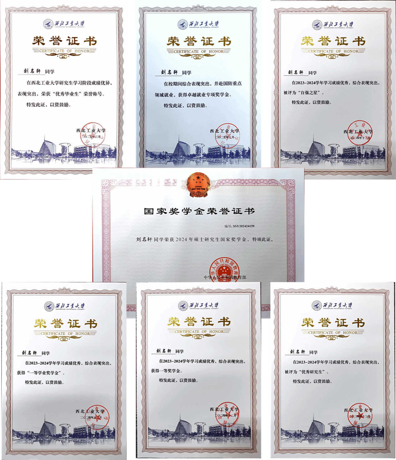刘名轩连续两年获得“优秀研究生”荣誉称号,并获得“自强之星”、“优秀毕业生”荣誉称号。荣获2024年研究生国家奖学金,卡通a片