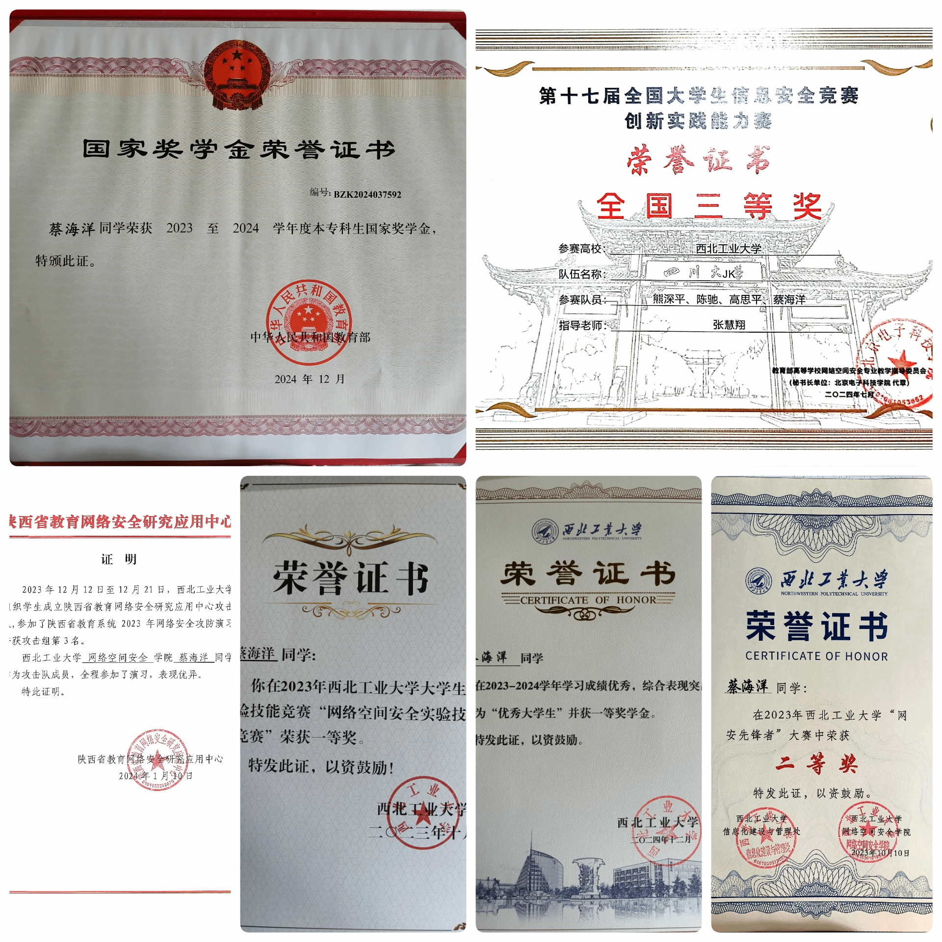 1. 第十七届全国大学生信息安全竞赛创新实践能力赛全国三等奖