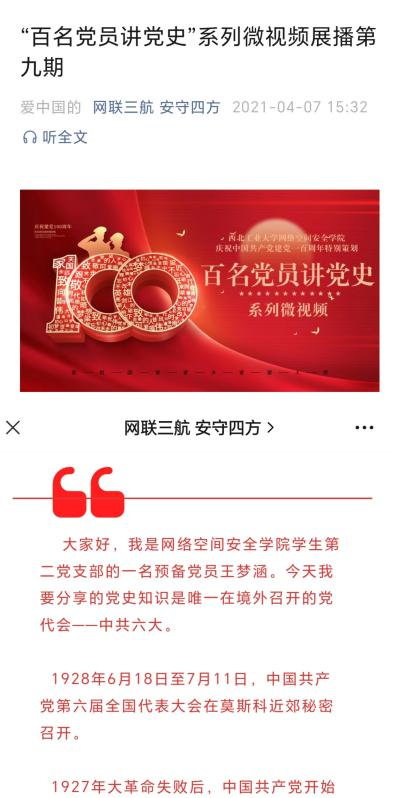 网络空间安全专业 2021级硕士研究生 学生第七党支部组织委员 |