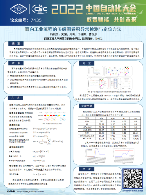 《面向工业流程的多级图卷积异常检测与定位方法》, 学生第一作者, 发表于2022年中国自动化大会。