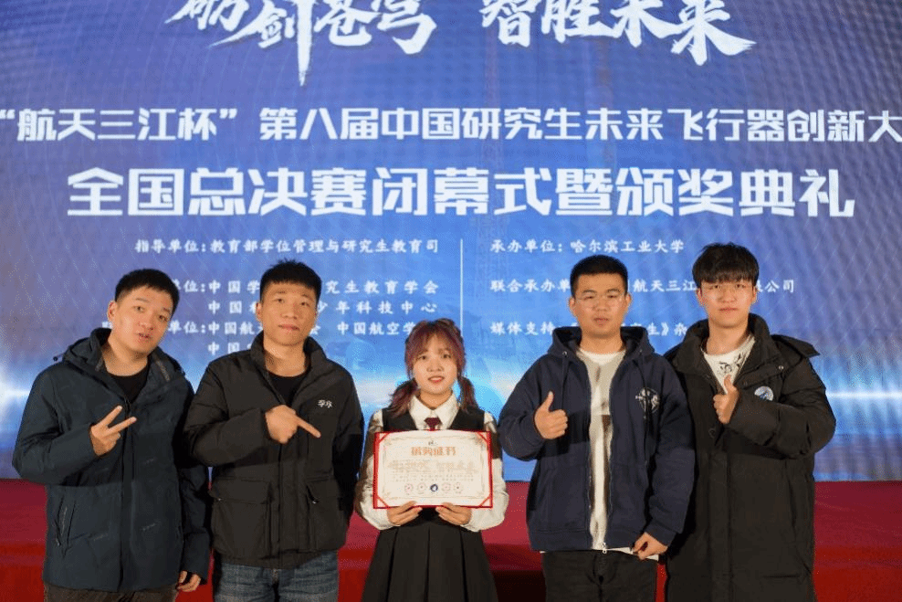 除了在社会工作方面的卓越表现,袁坤焱同学在科技竞赛中也取得了令人瞩目的成绩。作为团队队长,她带领团队参加了第八届中国研究生未来飞行器创新大赛,凭借出色的创新能力和团队协作能力,获得了挑战赛道第一名的优异成绩,为学校争得了荣誉。