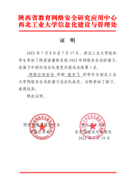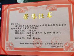 l 陕西高校网络安全实战攻防竞赛三等奖