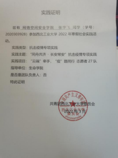 张宇飞在学习之余,也十分注重其他方面的发展,积极参加各类活动。在疫情期间担任志愿者,为医护人员子女进行学业指导;主动参加多种校园活动,不断提高自己的文化素养。