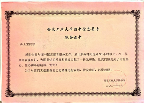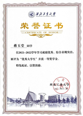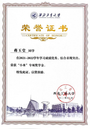 自大一入学以来,蒋玉堂始终积极学习专业基础知识,定期制定学习计划,学业成绩始终位于年级前列。本科期间曾主持和参与省级大学生创新创业训练计划项目2项,并获得远航奖学金、小米优秀奖学金、校一等奖学金。