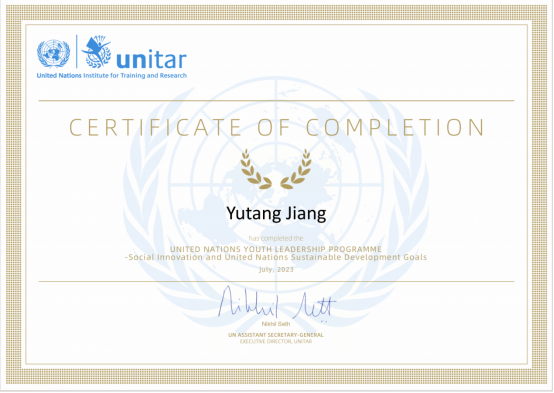 除了学习之外,蒋玉堂积极投身社会实践和志愿服务活动中,曾担任校图书馆志愿者,负责书籍整理归档;于寒假参加‘云端’牵手,‘疫’路同行,为省人民医院的医护人员子女进行学业辅导,所在实践队获得抗击疫情专项实践特等奖;2023年暑假参加联合国可持续发展与青年领导力项目,在项目活动中极大地拓展了国际视野,于各方同学缔结了深厚的友谊。