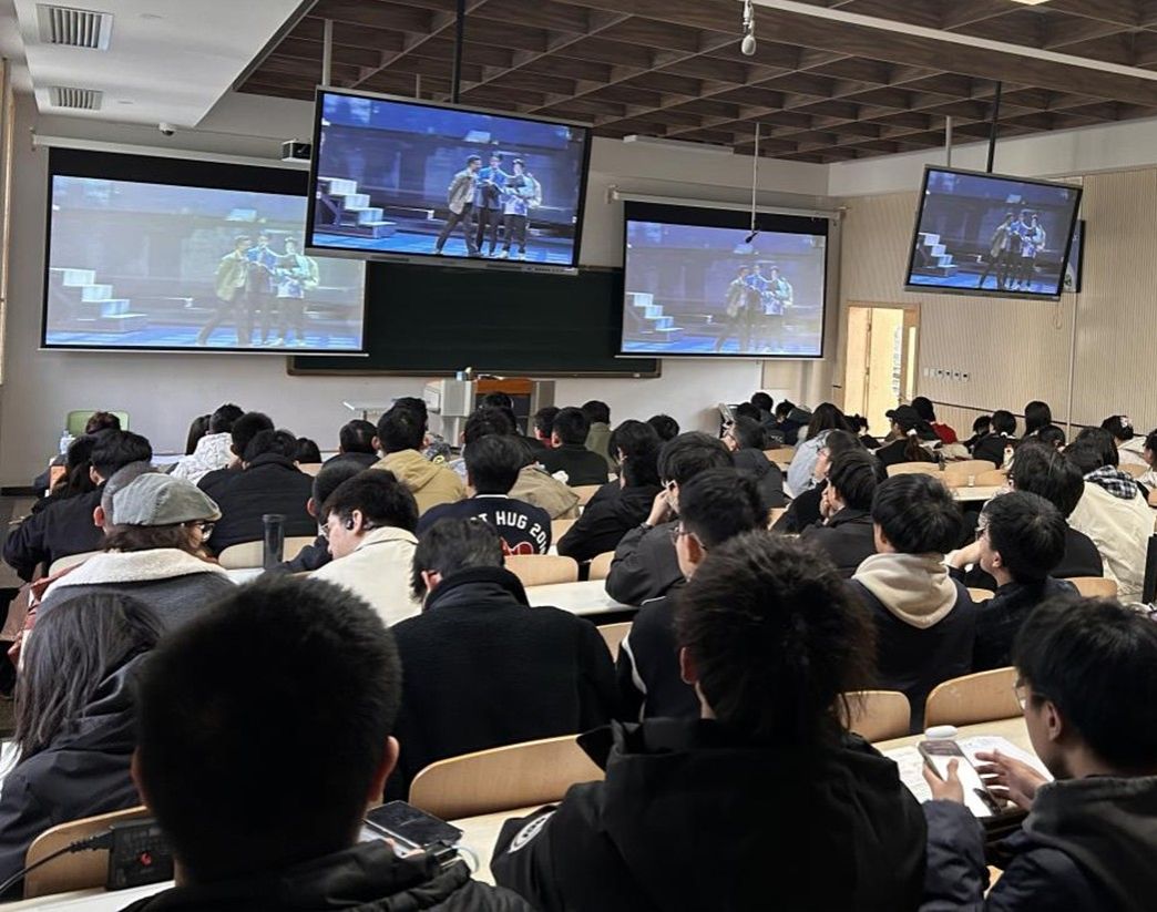 观看前,学院党委副书记杜瑶做了开场说明,她指出,学院将充分用好学校各类优质教育资源,充分发挥《大国之蓝》《寻找师昌绪》《古路坝灯火》等优秀作品在育人体系中的独特价值。通过组织观演、剧目研讨、角色体验等多元活动,深度激发学生内在潜能,引导学生在艺术审美中汲取精神力量,涵养家国情怀、科学精神与人文素养,全方位推动总师育人走深走实。