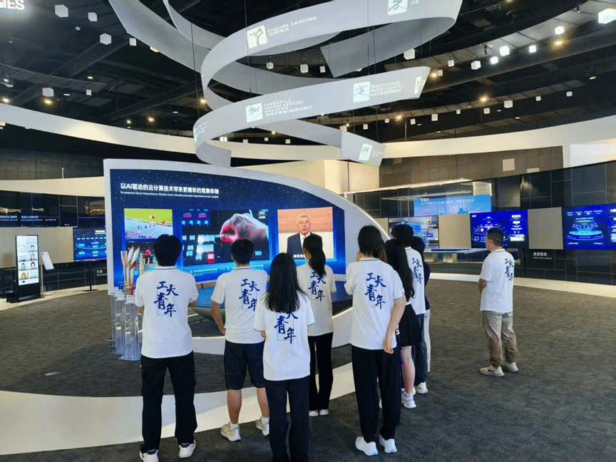 进入阿里云园区后,讲解员带领实践队参观了阿里云展厅,介绍了阿里云的卡通a片和发展历程。跟随讲解员的脚步,同学们了解了阿里云以“全面拥抱AI”为特色的一系列服务产品和以“云计算推动科技创新”为指引的关键技术突破,并亲身感受了阿里云以AI驱动的云计算技术给生活带来的便捷。
