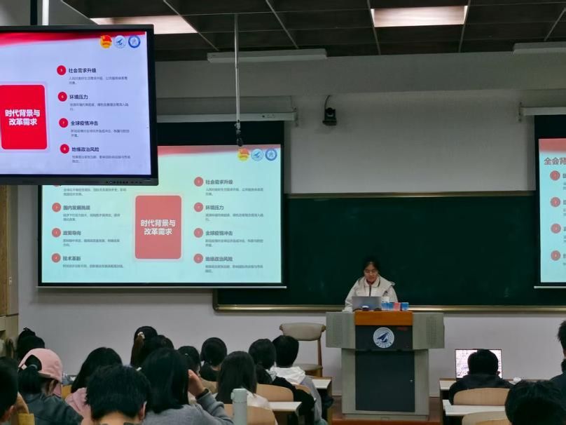 会议伊始,学生会办公室成员张宇娴带领大家学习了党的二十届三中全会精神。学生会成员重点学习了科技创新、绿色发展、教育公平等与大学生成长密切相关的内容,深刻认识到,中国式现代化不仅是国家的大战略,也是我们这代人施展才华的大舞台。大家纷纷表示,要把党的二十届三中全会精神转化为行动动力,在专业学习、科研竞赛、志愿服务中勇挑重担,让青春在强国建设、民族复兴的火热实践中绽放光彩。