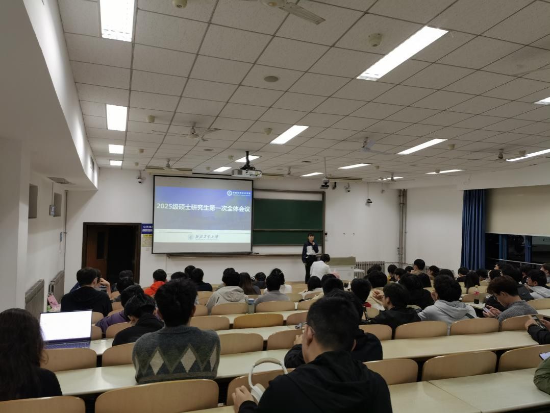 在长安校区教学西楼教西C2-201组织召开2025级硕士研究生第一次全体会议暨新生见面会。学院党委副书记杜瑶、2025级专职辅导员朱丹、兼职辅导员曾骏以及全体2025级硕士研究生参加会议。