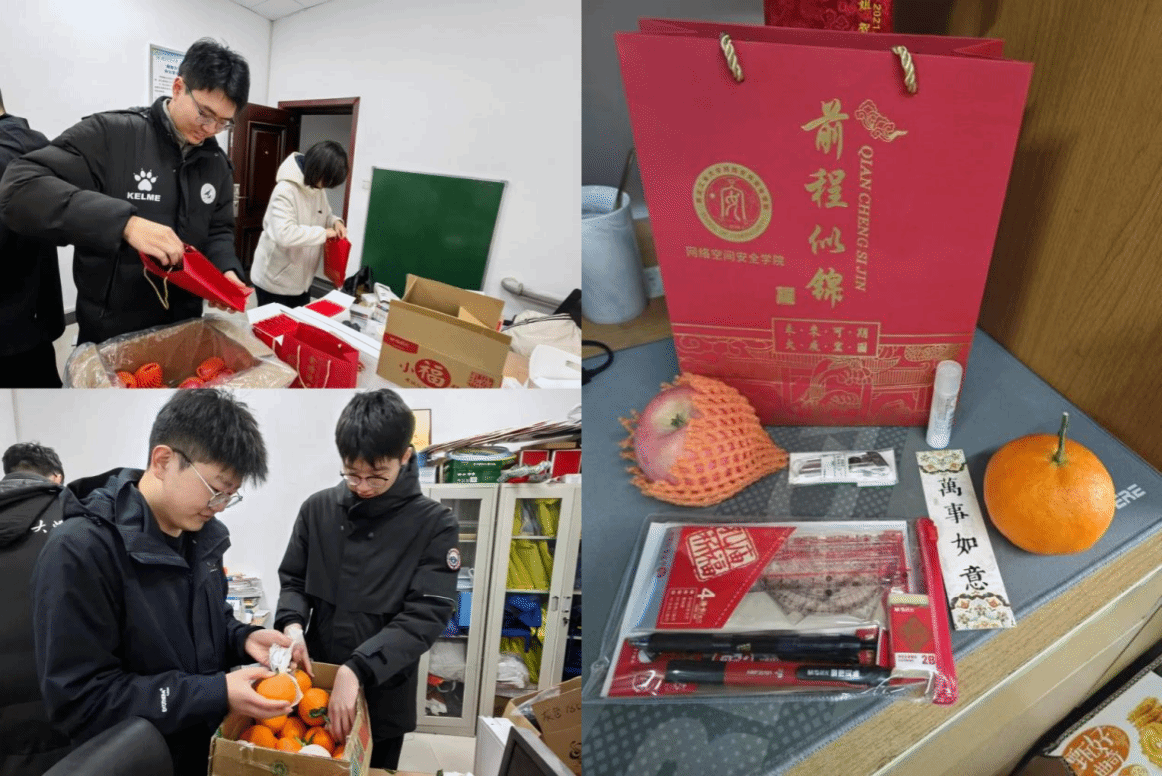 为了进一步关怀考研学子,学院于12月12日组织开展了“送温暖”活动,由学院党委副书记杜瑶、专职辅导员朱丹以及兼职辅导员张昊翔共同深入学生宿舍,为考研学生送上精心准备的福袋。