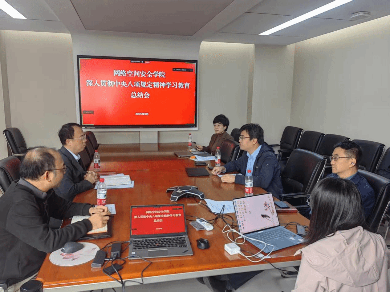 张文涛在总结讲话中强调,本次学习教育使全院党员干部对中央八项规定精神的理解更加深刻,作风建设取得扎实成效。下一步,学院党委将坚持高标准、严要求,持续推动中央八项规定精神在学院落地生根。一要在深化思想认识上再下功夫,将学习贯彻习近平总书记关于党的建设的重要思想、关于党的自我革命的重要思想以及关于加强党的作风建设的重要论述,学习贯彻中央八项规定精神及其实施细则精神,作为长期政治任务,不断增强落实中央八项规定精神的政治自觉、思想自觉和行动自觉。二要在狠抓整改落实上再见真章,紧盯台账清单,动态跟踪、对账销号,确保问题整改彻底到位,坚决防止反弹回潮。三要在健全长效机制上再求实效,将工作重心从制度构建转向制度执行,着力强化现有师德师风、资源管理等方面制度的刚性约束力和实际执行力,推动作风建设常态化、长效化。四要在推动学院发展上再聚合力,将作风建设的成果转化为锐意进取、真抓实干的实际行动,紧紧围绕国家网络空间安全重大战略需求,以过硬作风保障学院事业高质量发展。