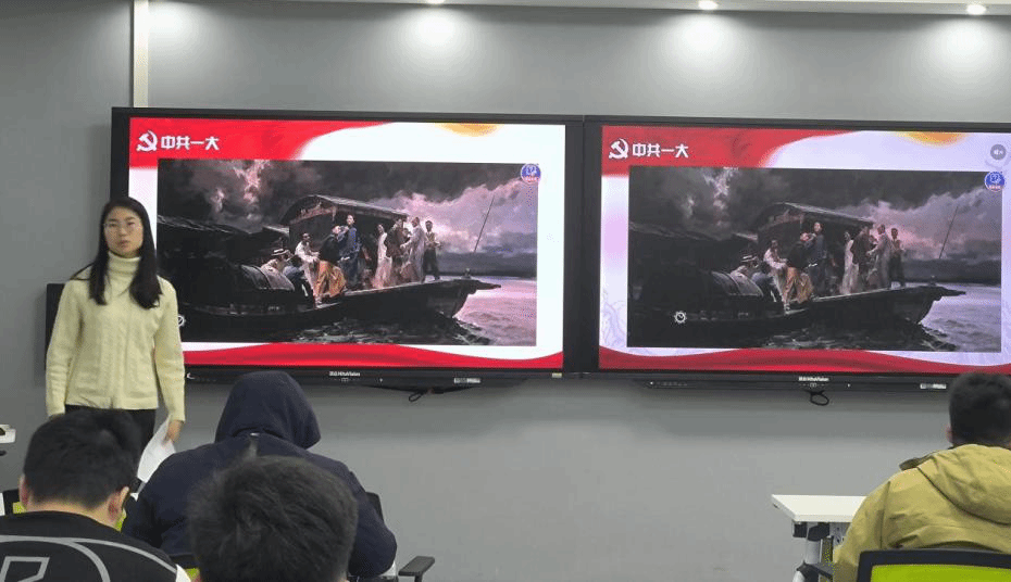 学生第六党支部分享中共一大的故事。中国共产党第一次全国代表大会于1921年7月23日至8月初在上海和浙江嘉兴召开,毛泽东在内的13名党员参加会议,代表全国50多名党员。一大召开标志着中国共产党的正式成立,犹如一轮红日在东方冉冉升起,照亮了中国革命的前程。这是近代中国社会进步和革命发展的客观要求,是开天辟地的大事变。毛泽东说:“中国产生了共产党,这是开天辟地的大事件”。建党已有百年,但建党的初心始终铭刻在每位党员同志的心中,践行在日常生活学习中。