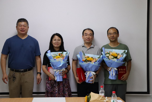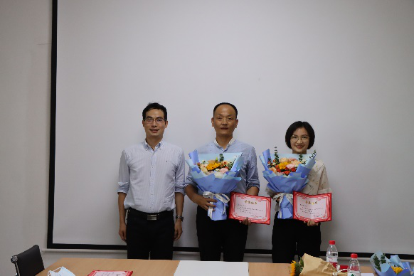 接着,举行学院2022年教师节表彰大会。张盛兵院长宣读了表彰名单,共表彰校级获奖的2位老师,以及院级获奖的10位老师。学院领导为获奖人员一一颁发荣誉证书,并赠上鲜花。张院长表示,教师节表彰,无论是对教师本人,还是对学院,都是一件大事。对个人来说,表彰是对教师辛勤工作的肯定,也是教师职业生涯的骄傲和荣誉。对学院来讲,获奖教师为人才培养、科学研究和学院、学校事业发展做出了独特而重要的贡献,能起到树立典型,引领示范的作用,从而鼓励全院师生积极投身到立德树人的工作中。同时,教师节表彰,也是学院一笔无形和无价的宝贵财富,体现着学院尊崇师道的文化理念,更是学院全面加强和推进文化建设的重要抓手。希望通过这样的活动,能够让获奖教师有一种荣誉感、更有一种网安人的仪式感,让尊师重教的文化在网安学院得以传承和发扬。