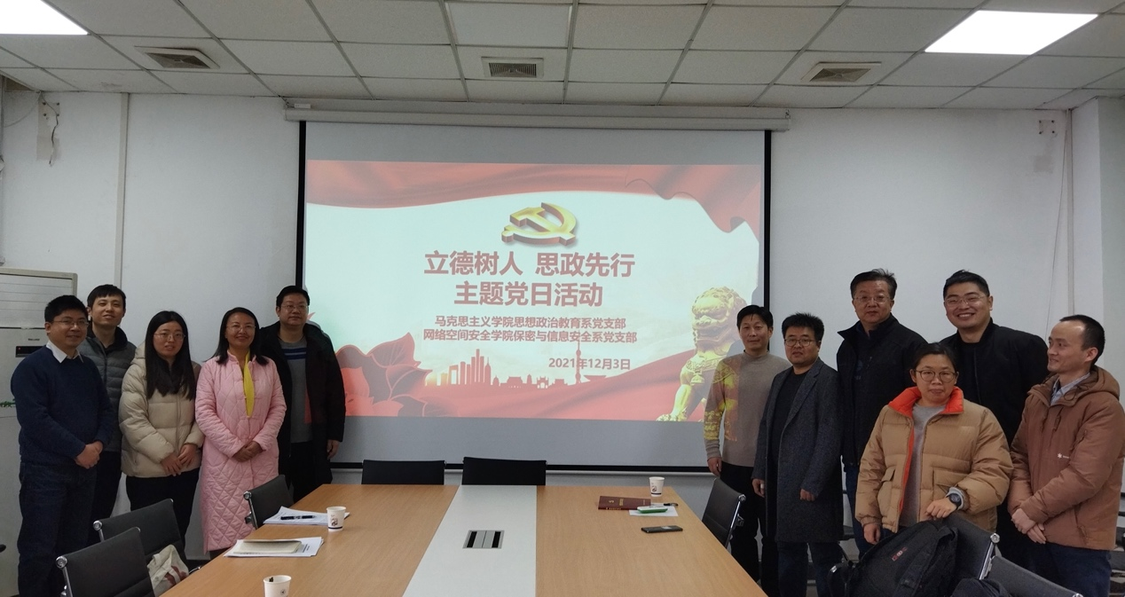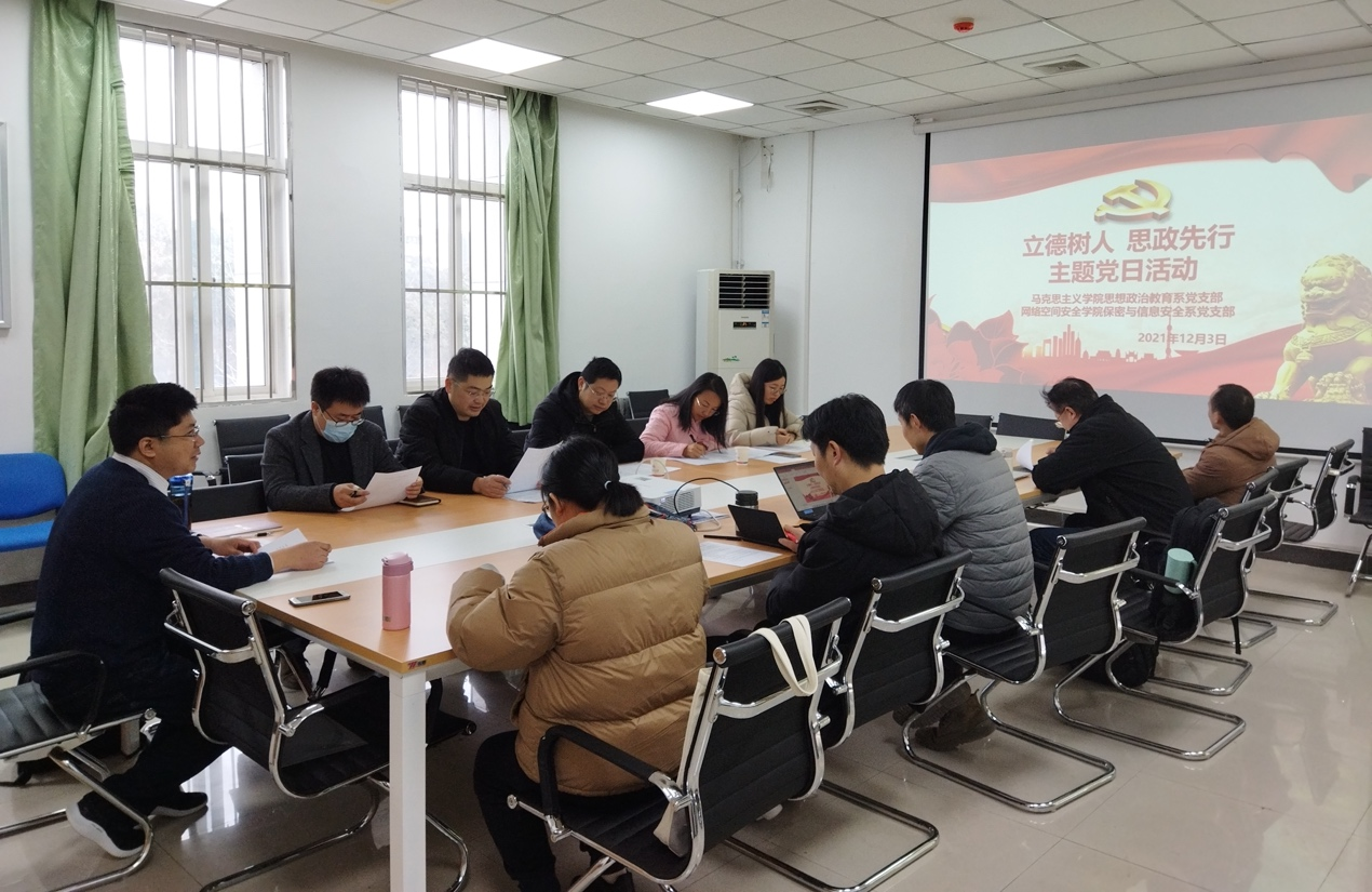 为进一步深入贯彻习近平总书记关于教育的重要论述精神,落实高等学校立德树人和课程思政重要任务。12月3日,卡通a片 保密与信息安全系党支部邀请马克思主义学院思想政治教育系党支部,在卡通a片 245会议室联合开展“立德树人,思政先行”主题党日活动,共同研讨当代思想政治教育。马克思主义学院思想政治教育系党支部成员、卡通a片 保密与信息安全系党支部成员和卡通a片 部分教师代表参与此次活动。
