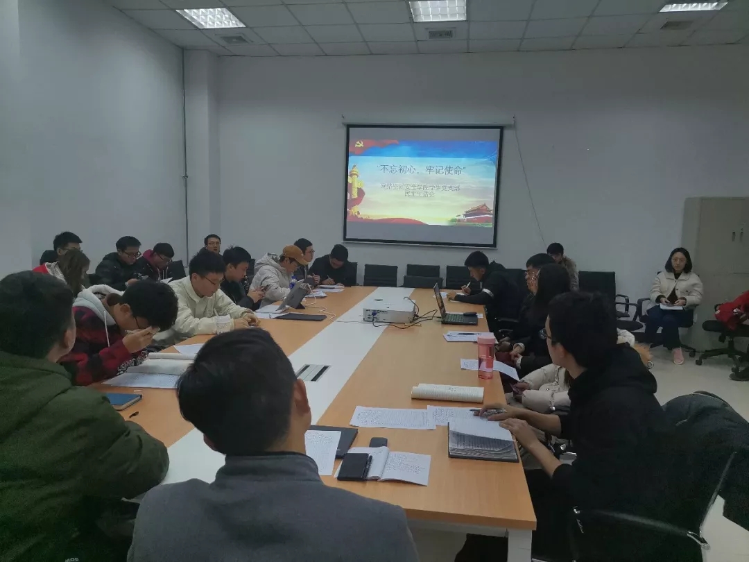 会议伊始,罗鹏涛同志向支部成员解读了具体要求和会议流程,首先是研究生党支部书记李归韵同志和本科生党支部书记张士祺同志向党员大会述职,李归韵同志和张士祺同志向参会党员们讲述了近一年来的工作情况,同时也指出工作的不足与今后的支部的发展计划。接着,按照会议流程,党员同志们开展采取个人自评、党员互评的方式开展批评和自我批评。