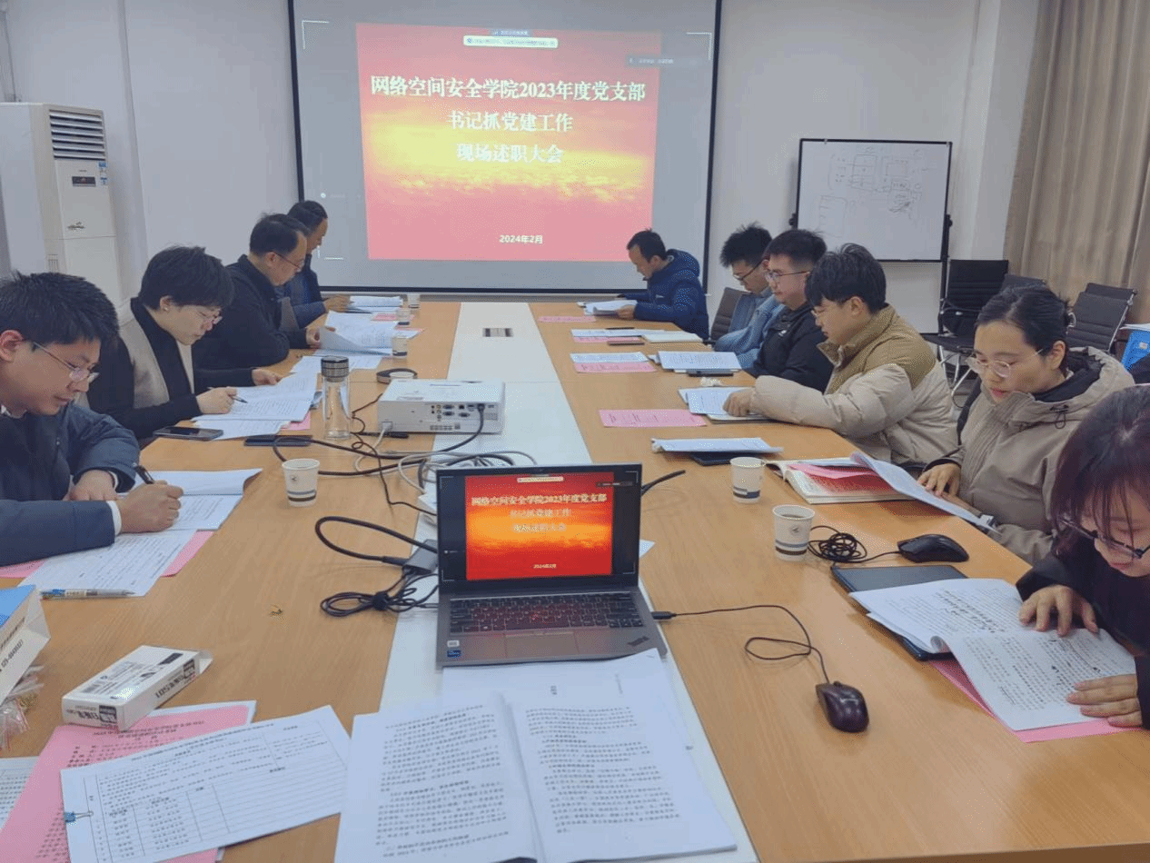 随后,三位教职工党支部书记依次进行述职。各位党支部书记重点围绕深入学习贯彻党的二十大精神、落实基层党建工作重点任务、强化党支部政治功能和组织功能、做好师生思想政治教育、落实全面从严治党要求等方面以及支部工作中存在问题和下一步计划等进行述职。述职后,张文涛对述职情况进行了总体点评。他肯定了三个教职工党支部在教工思想引领、助力教工成长、专注人才培养工作、谋划学院大事、党风廉政建设方面取得的成绩和形成的特色,强调在新的一年里,教工党支部要进一步发挥战斗堡垒作用和先进引领作用,团结带领支部党员和联系群众聚焦“127”发展目标和一流示范网安学院建设指标,开动脑筋,攻坚克难,为完成学院建设目标作出积极贡献。